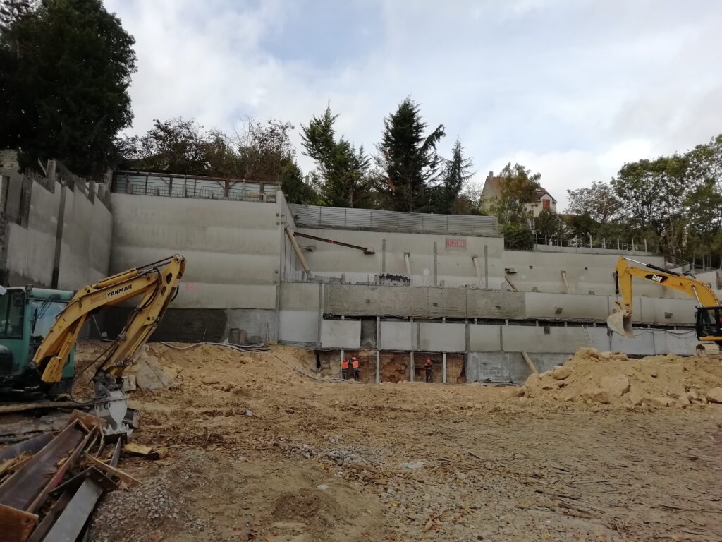 Gros contexte de pente au droit du site, (dénivelé de plus de 9 m entre la partie amont et aval), impliquant la réalisation de plusieurs parois berlinoise en partie amont sur des hauteurs atteignant jusqu’à 10 m.