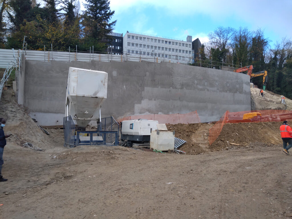 Les travaux de terrassements ont conduit également la nécessité de réaliser des parois berlinoises afin de soutenir les terres en limite de propriété, ainsi qu’à la réalisation de talus de grandes hauteurs.